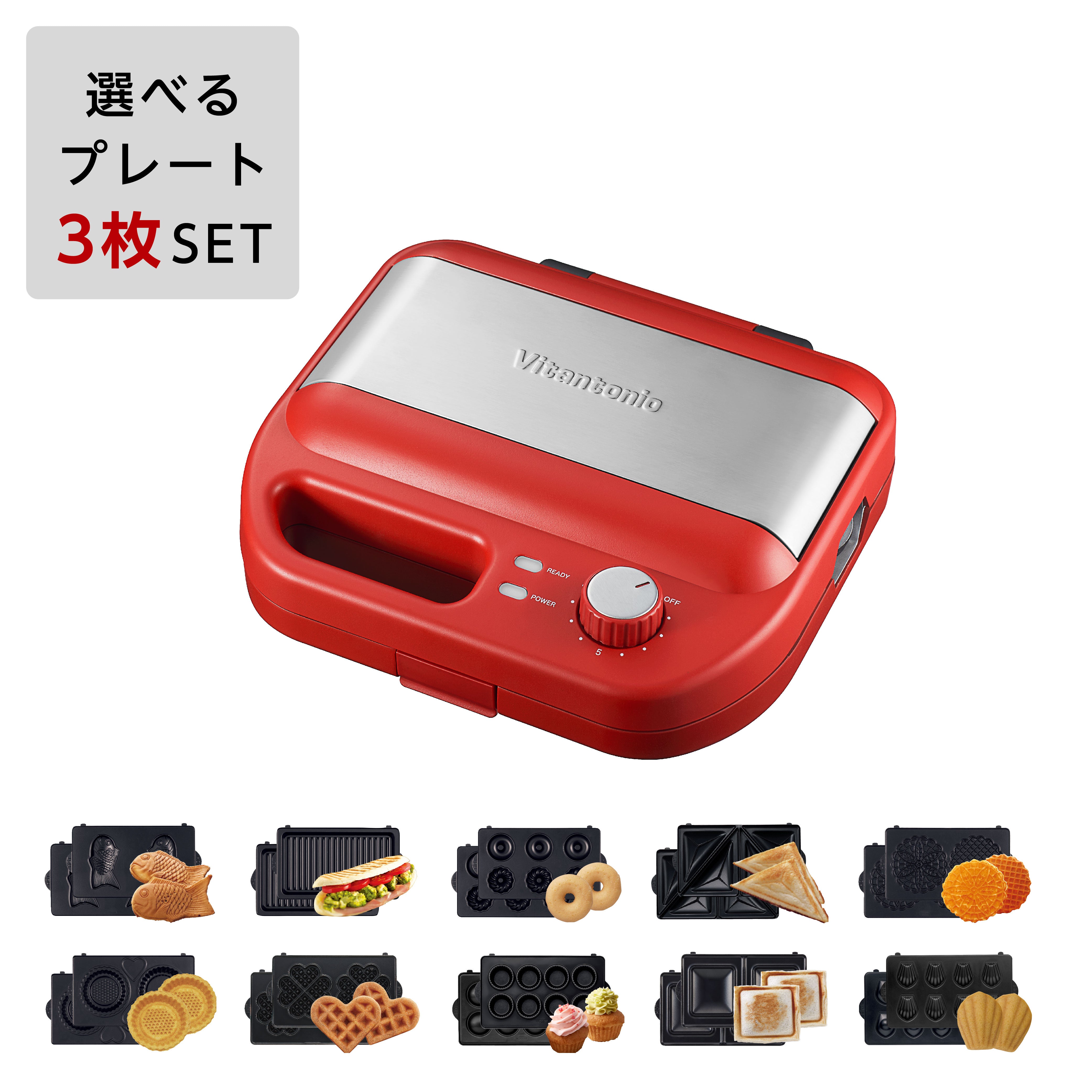 【選べるプレート3枚セット】ワッフル&ホットサンドベーカー(VWH-600)